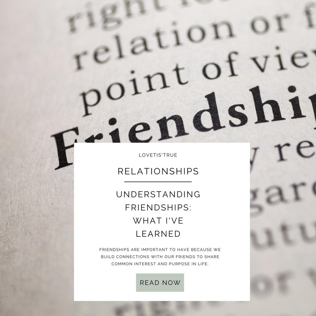 Over the past years I've realized I haven't been the best of friend at times. As I've got older I've learned from my mistakes on how I being more vulnerable and honest about how I feel when its difficult to share my feelings. I have also learned, when someone has not been a friend to me, I've learned to forgive others without expecting anything in return. Instead of walking a way from a problem in my friendships, first seek to find resolution instead of turning my back and never looking back. These are areas in my friendship I've struggled with in the past, but I'm more wiser than I was yesterday about the mistakes I did. Now looking forward I can make wiser and healthier connections with the friendships I have today. And I'm glad, that I have a closer friend with Jesus than I have ever had to truly understand what it means to be a true friend to others.