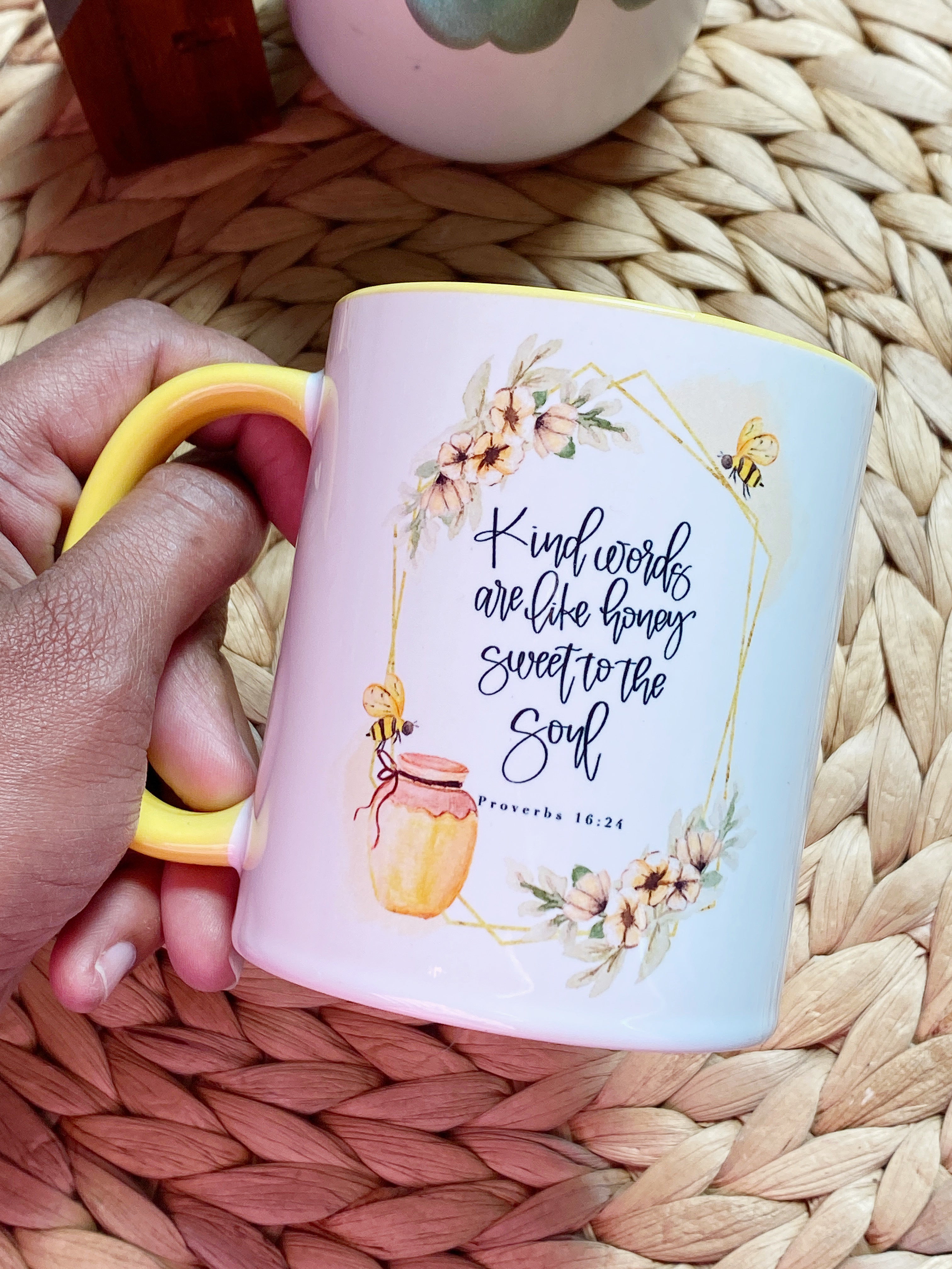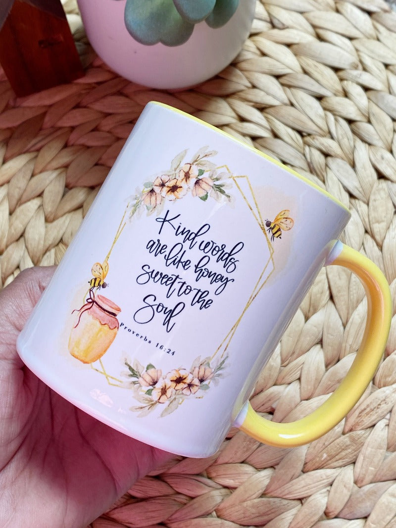 Las palabras amables son como la miel - Proverbios 16:24 Taza cristiana