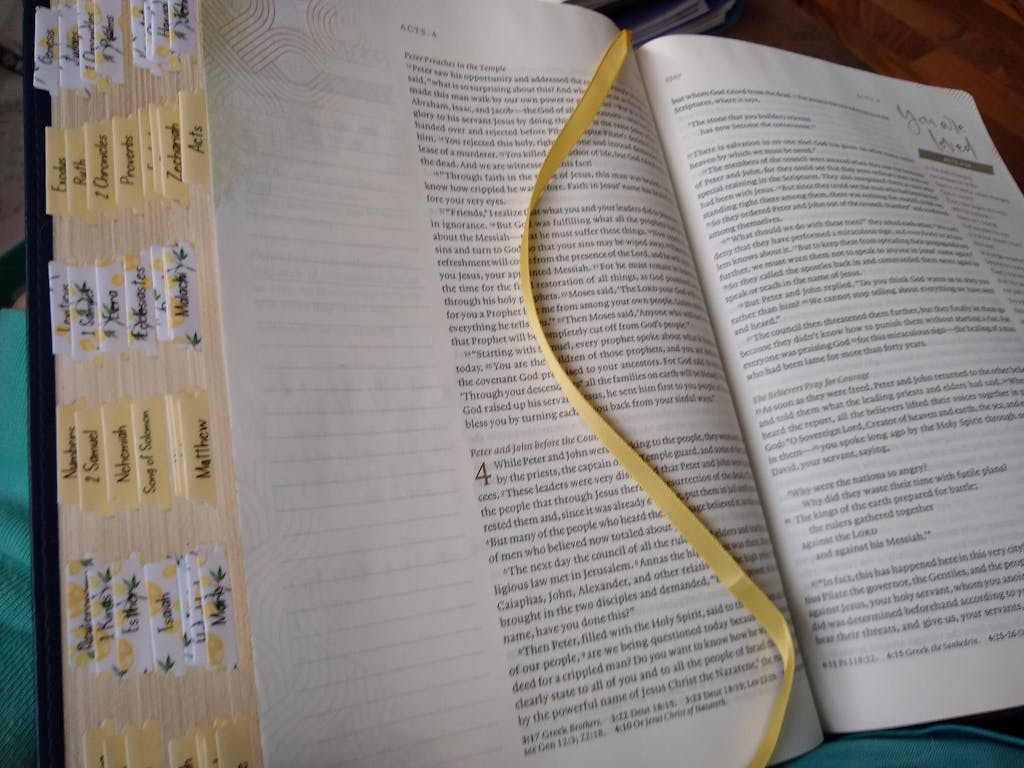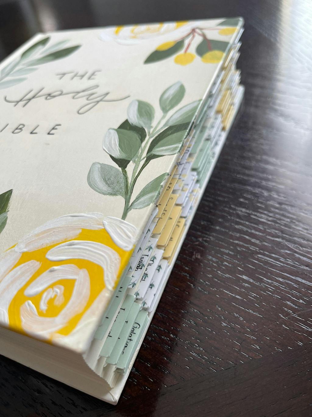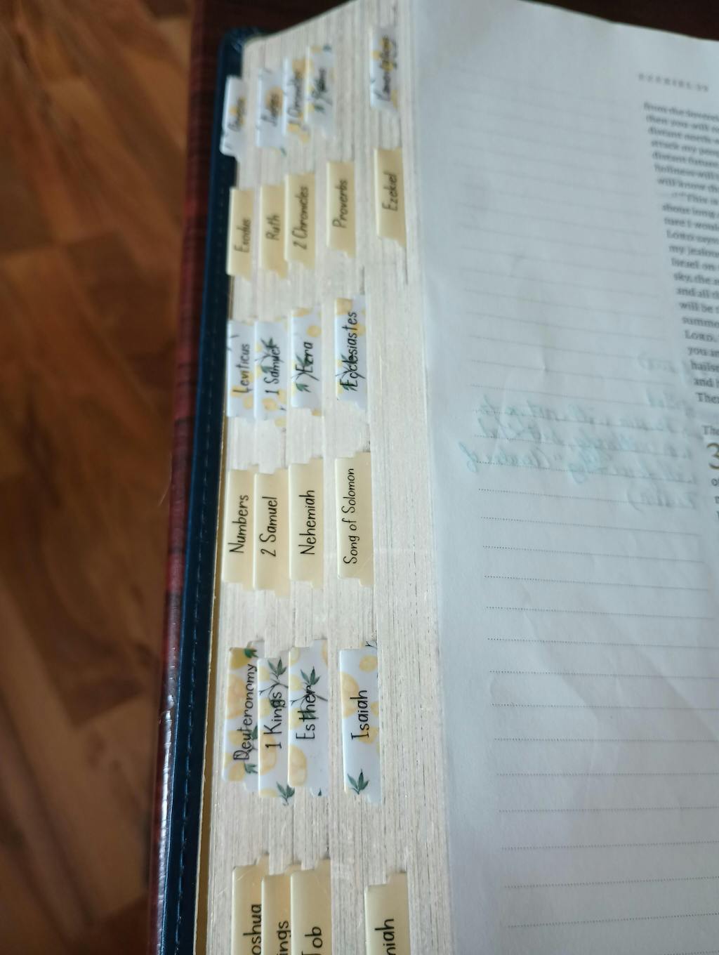 *Tenga en cuenta que si necesita levantar la pestaña para alinearla correctamente, retírela con cuidado antes de asegurarla en su lugar o sellarla en el lado opuesto de la página. Aún puedes quitarlo suavemente antes de asegurarlo dependiendo del tipo o papel de tu Biblia.