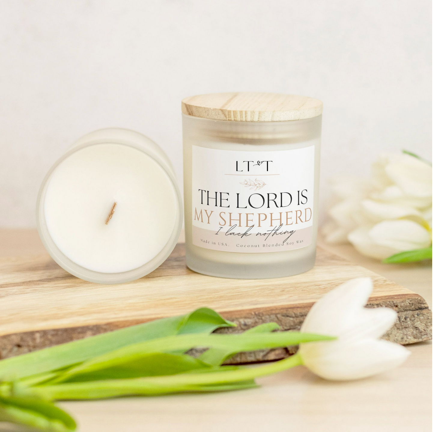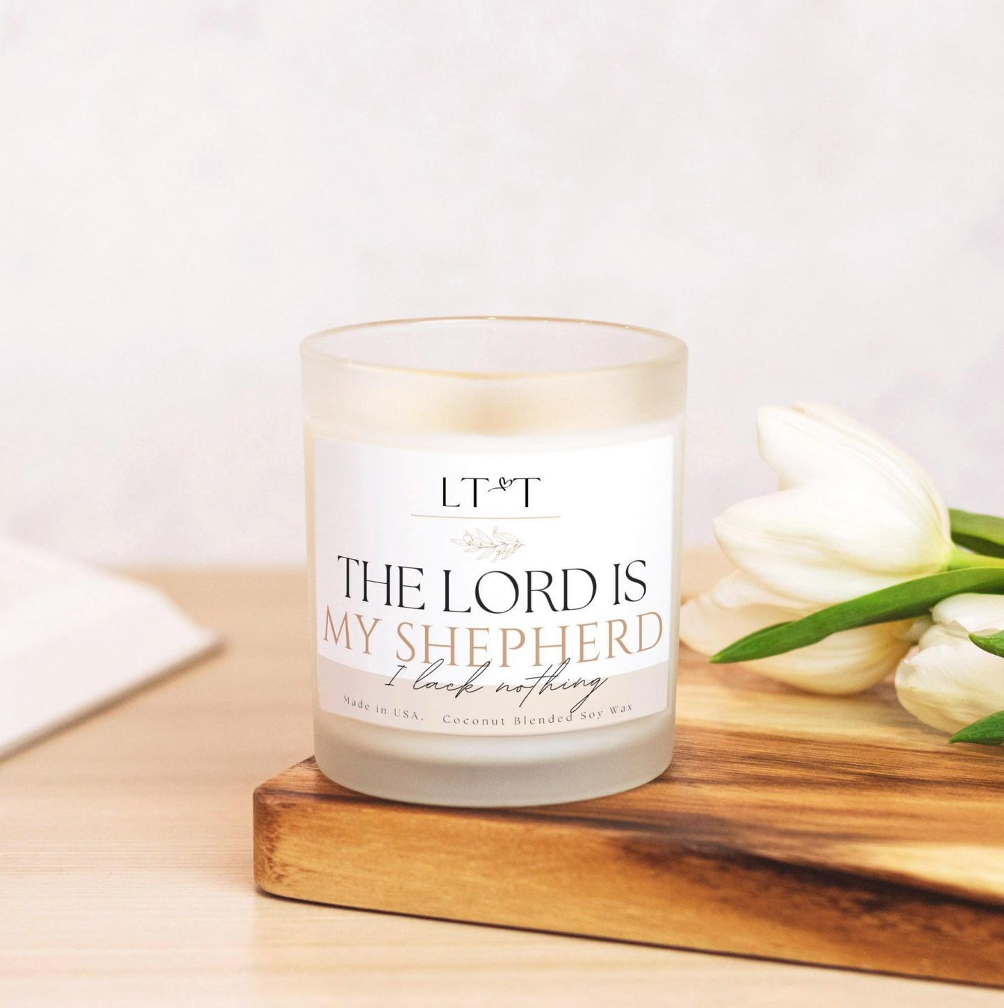 The Lord Is My Shepherd Candle Frosted Glass (Hand Poured 11 oz)